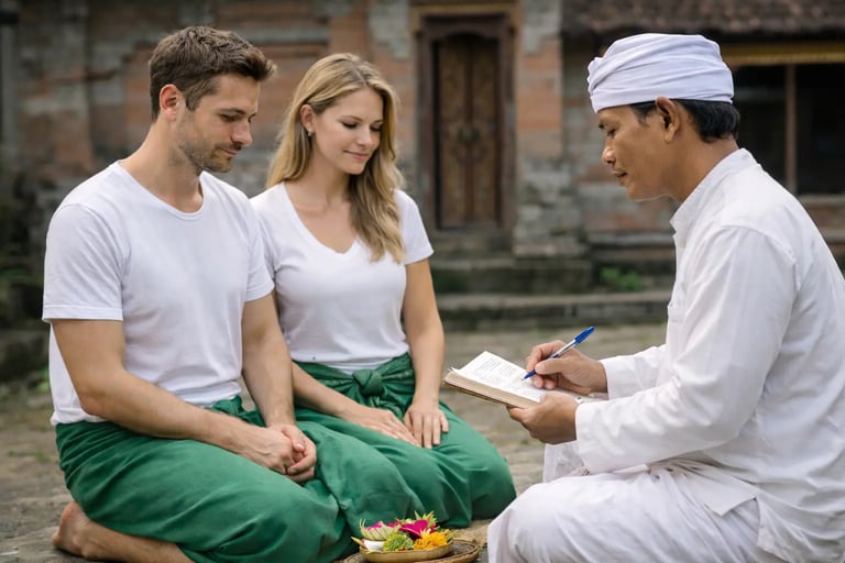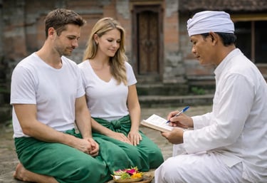 Mebayuh Patemon is a sacred ritual conducted at the home of a Balinese Hindu priest. It involves a personalized reading based on your date of birth, where the priest interprets ancient Balinese Hindu scriptures—knowledge passed down through generations, rooted in spiritual observation and ancestral wisdom.